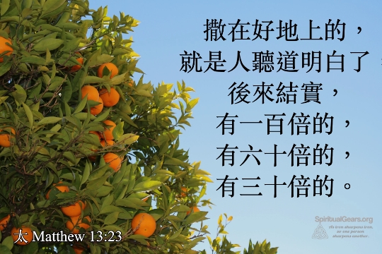 “撒在好地上的,就是人听道明白了,后来结实,有一百倍的,有六十倍的,有三十倍的。”(23)