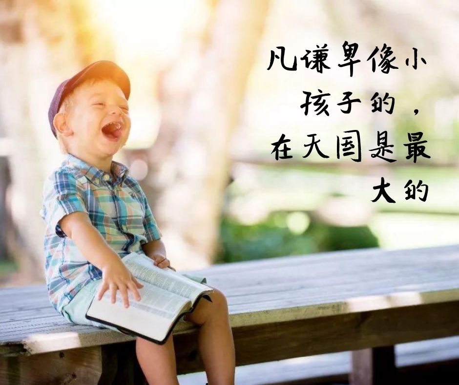 “当时,门徒进前来,问耶稣说:天国里谁是最大的?耶稣便叫一个小孩子来,使他站在他们当中,说:我实在告诉你们,你们若不回转,变成小孩子的样式,断不得进天国。”(太18:1-3)