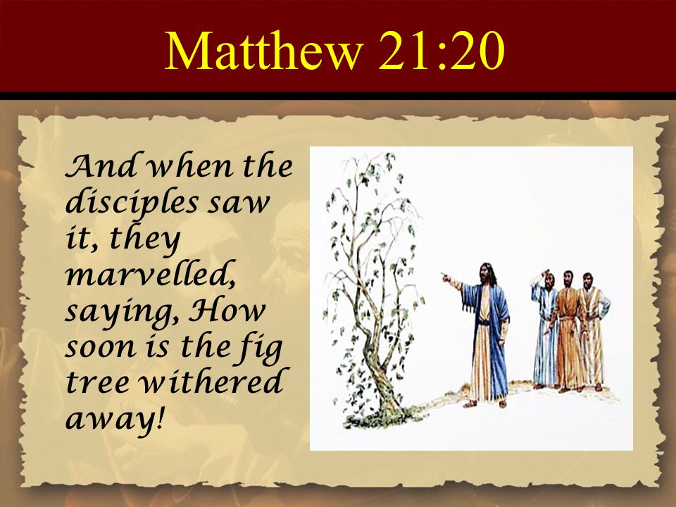 第一,只要相信,有向神坚定单纯的信心,甚至能让无花果树枯干,这是讲到神最终要把审判胜过罪恶的权柄赐给我们,这也是跟从主的人在天国的赏赐;
