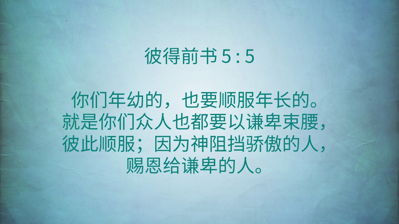 “因为神阻挡骄傲的人,赐恩给谦卑的人。所以你们要自服在神大能的手下,到了时候祂必叫你们升高。”(彼前5:5-6)