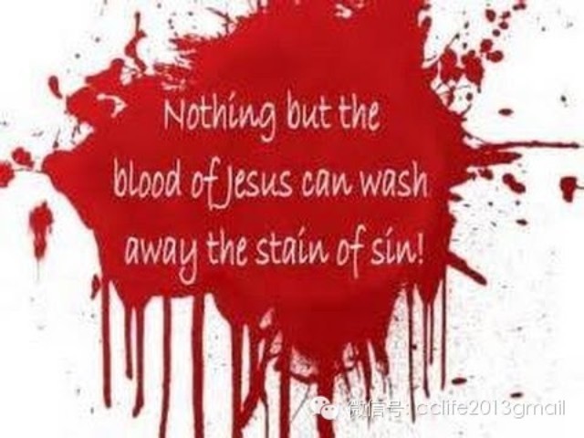 (上图文字:唯有耶稣的血才能洗净我们的罪污。)