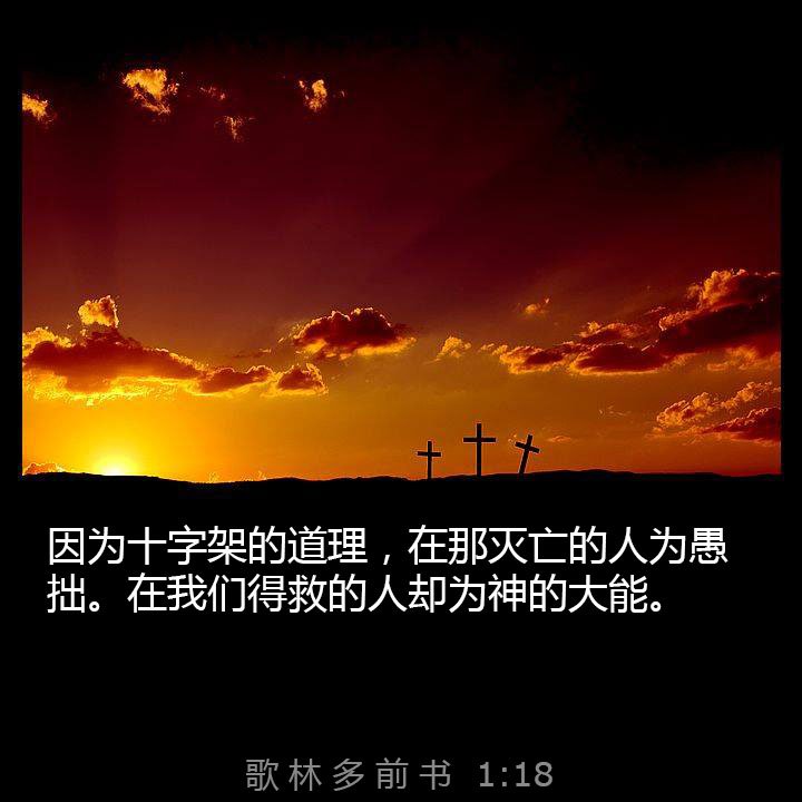 今日经文: 18.因为十字架的道理,在那灭亡的人为愚拙。在我们得救的人却为神的大能……。21.世人凭自己的智慧,既不认识神,神就乐意用人所当作愚拙的道理,拯救那些信的人。这就是神的智慧了。22.犹太人是要神迹,希利尼人是求智慧。23.我们却是传钉十字架的基督,在犹太人为绊脚石,在外邦人为愚拙。24.但在那蒙召的,无论是犹太人,希利尼人,基督总为神的能力,神的智慧。(哥林多前书1:18-24)