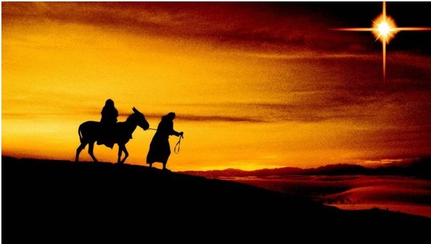 约瑟带着身孕很重的马利亚长途跋涉到伯利恒,马利亚临产,客店里没有地方,约瑟就在马棚里为马利亚预备生产的地方,把马槽打扫干净,守候在马利亚身边,对马利亚是体贴入微地照顾陪伴。