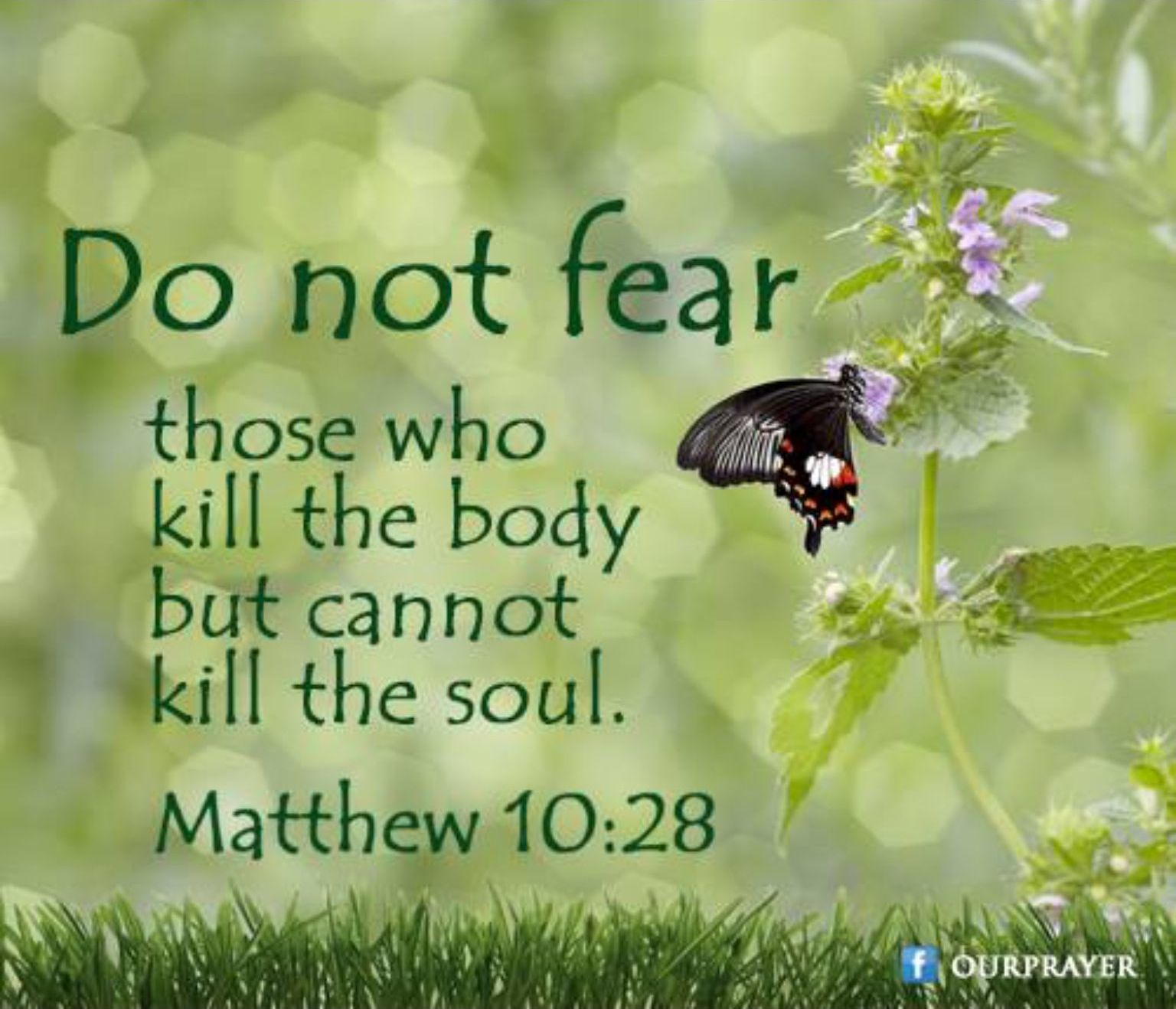 那杀身体,不能杀灵魂的,不要怕他们;唯有能把身体和灵魂都灭在地狱里的,正要怕他。