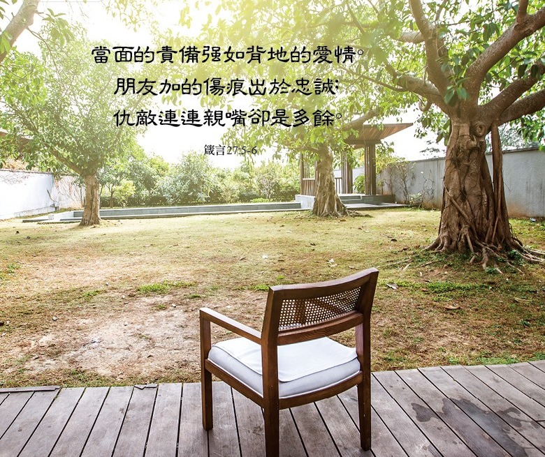“当面的责备强如背地的爱情。朋友加的伤痕,出于忠诚;仇敌连连亲嘴,却是多余。”(箴27:5-6)