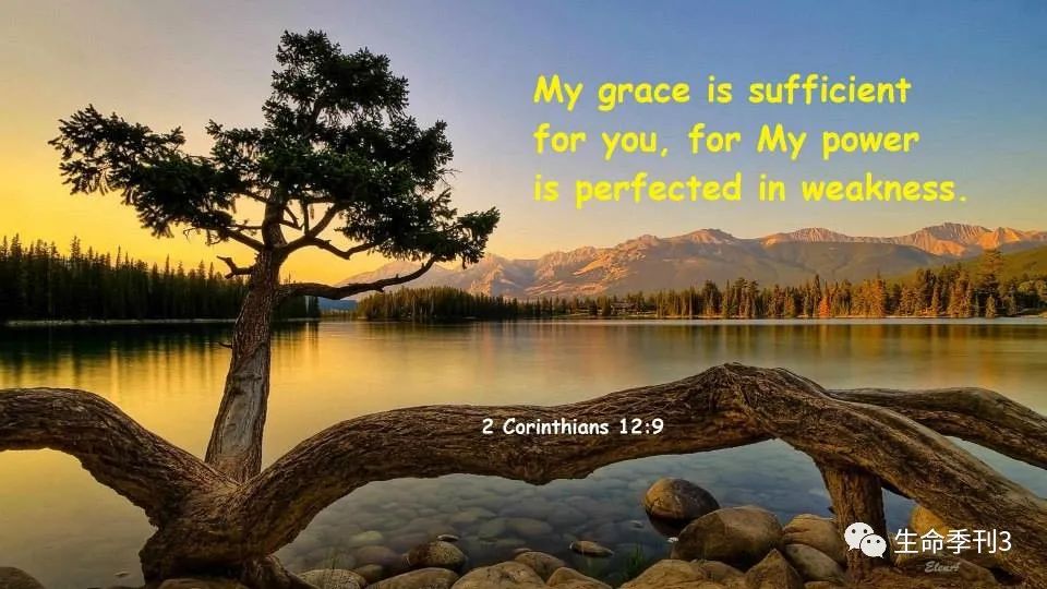 你身上有什么痛苦软弱,正像保罗肉体上的一根刺,虽然多次求主为你除去,却始终未能如愿么?不要灰心。主不除去你身上的软弱,正是要叫祂的能力在你身上显大。不要忘记祂的话说:“我的恩典够你用的;因为我的能力是在人的软弱上显得完全。”(林后12:9)