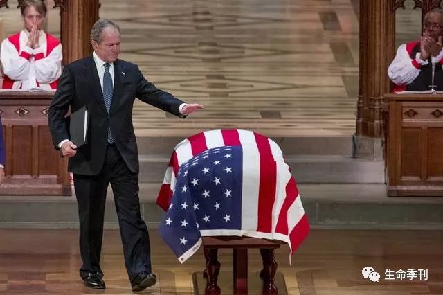 国葬仪式上,老布什的长子,美国第43任总统小布什(乔治·沃克·布什)致悼词。