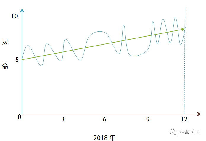 过去的一年中每个基督徒的灵命都有高有低。所以在坐标里用一个上下起伏的曲线来表示;为了方便,可以取平均值用一个直线来表示。