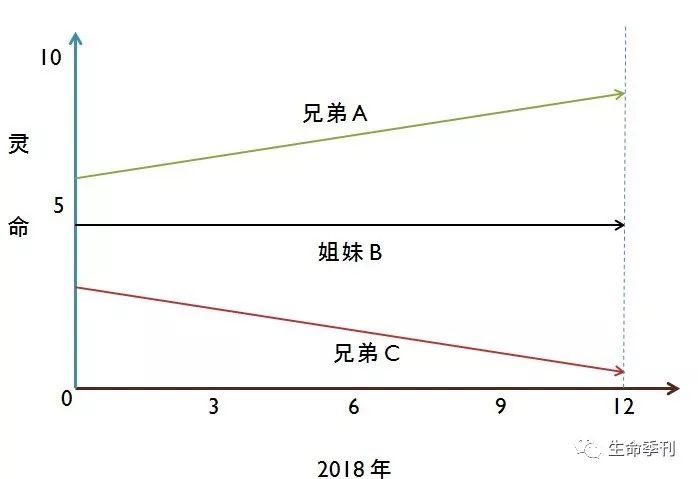 横坐标是时间:1-12月份; 纵坐标是每个人的灵命: 1-10