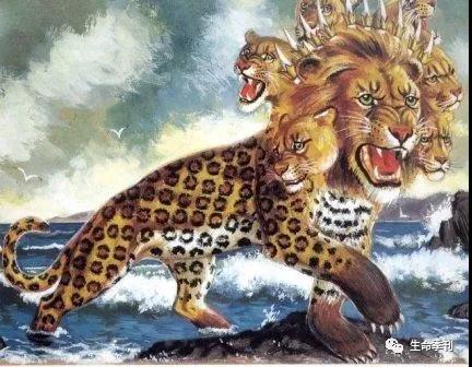 启13:1-2节经文:“我又看见一个兽从海中上来,有十角七头,在十角上戴着十个冠冕,七头上有亵渎的名号。我所看见的兽,形状像豹,脚像熊的脚,口像狮子的口。那龙将自己的能力,座位,和大权柄,都给了它。”