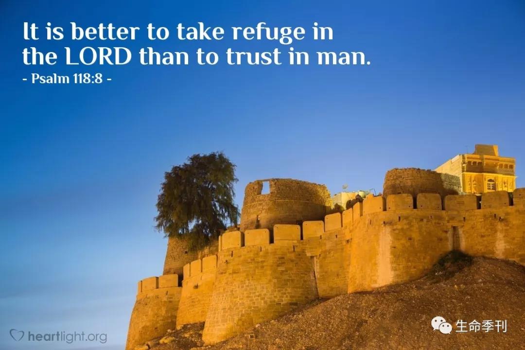 今日经文:投靠耶和华,强似倚赖人。投靠耶和华,强似倚赖王子。(诗篇118:8-9)