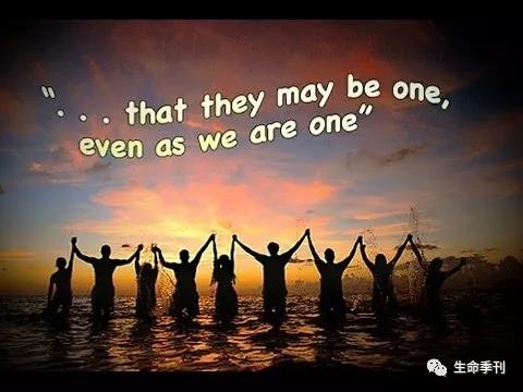 我不但为这些人祈求,也为那些因他们的话信我的人祈求。使他们都合而为一。正如你父在我里面,我在你里面,使他们也在我们里面。叫世人可以信你差了我来。你所赐给我的荣耀,我已赐给他们,使他们合而为一,像我们合而为一。我在他们里面,你在我里面,使他们完完全全地合而为一。叫世人知道你差了我来,也知道你爱他们如同爱我一样。(约17:20-23)
