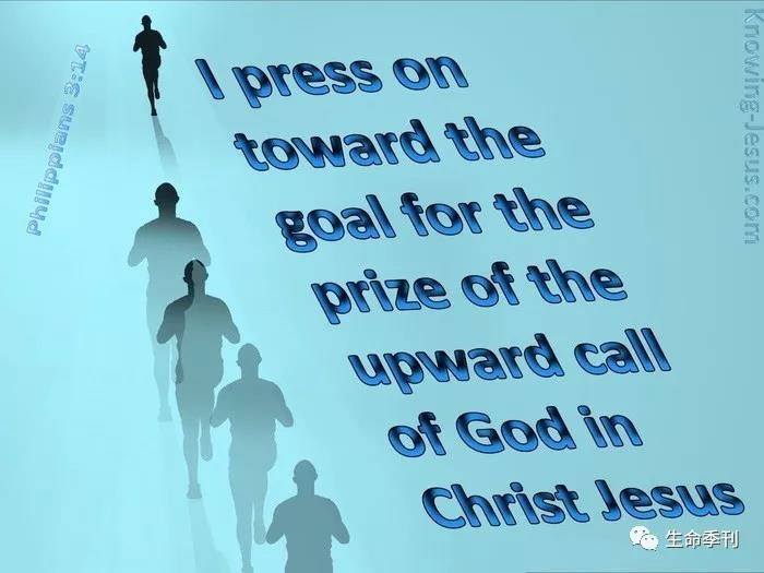 今日经文:弟兄们,我不是以为自己已经得着了。我只有一件事,就是忘记背后努力面前的,向着标竿直跑,要得神在基督耶稣里从上面召我来得的奖赏。(腓立比书3:13-14)