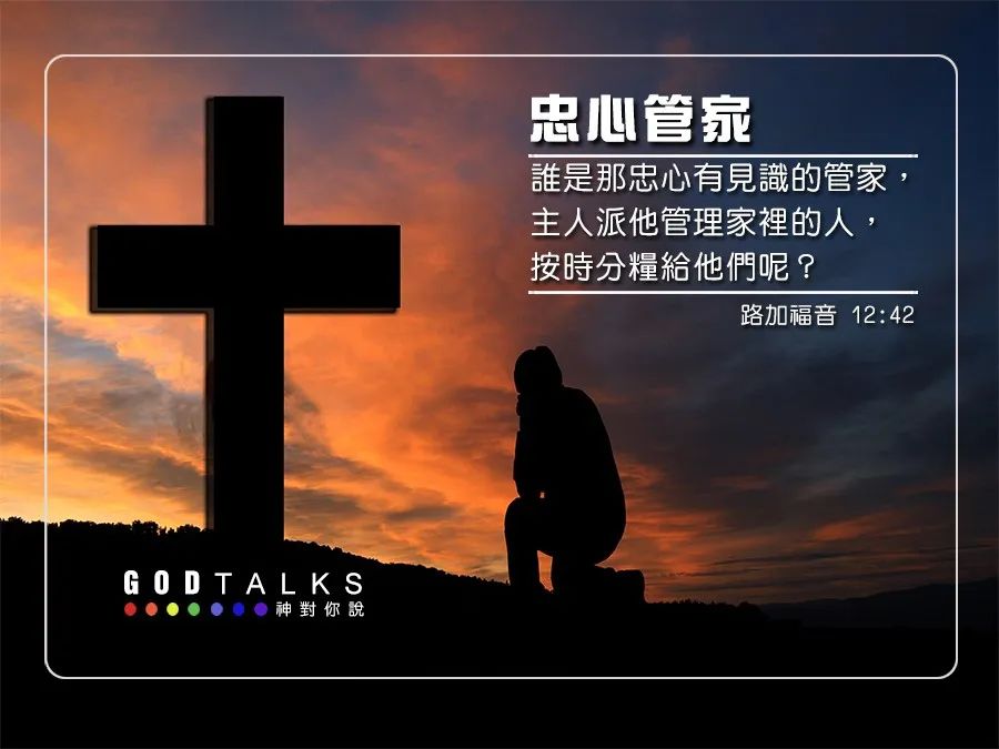 今日经文:“彼得说,主啊,这比喻是为我们说的呢,还是为众人呢?主说,谁是那忠心有见识的管家,主人派他管理家里的人,按时分粮给他们呢?主人来到,看见仆人这样行,那仆人就有福了。我实在告诉你们,主人要派他管理一切所有的。”(路12:41-44)
