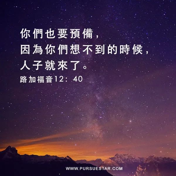 “你们要谨慎,恐怕因贪食醉酒,并今生的思虑,累住你们的心,那日子就如同网罗忽然临到你们;因为那日子要这样临到全地上一切居住的人。你们要时时儆醒,常常祈祷,使你们能逃避这一切要来的事,得以站立在人子面前。”(路21:34-36)