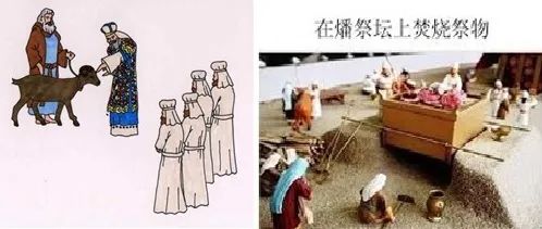 第二个祭也是由他们五位共同来执行,要宰杀第一只公绵羊,羊所放的血要全部洒在祭坛的四周。羊要切成块子,五脏和羊腿用水洗净,羊的各部位包括五脏羊腿羊头都要聚集摆在祭坛上,用火完全焚烧,这就是献给耶和华神的燔祭,是馨香的火祭。这样的焚烧需要很大的火,会幕外的祭坛够大,底下的柴火也能提供足够的火力来完成这个燔祭。