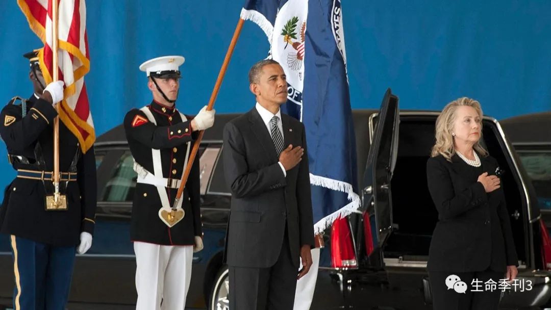 2012年9月14日,奥巴马、希拉里在斯蒂文斯葬礼上,媒体文章标题:希拉里,人民的敌人!