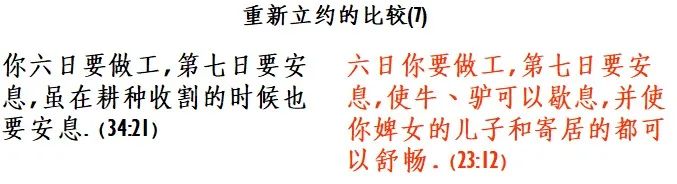 对比23:12守安息日的规定强调牲口和人的安息,这次规定加上进迦南定居后,每年收割季节遇到安息日也要遵守。