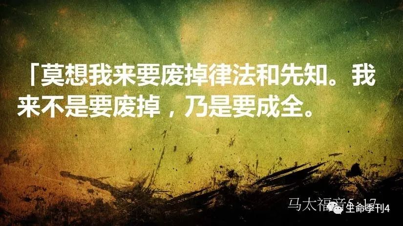 “莫想我来要废掉律法和先知,我来不是要废掉乃是要成全。”(马太福音5:17)